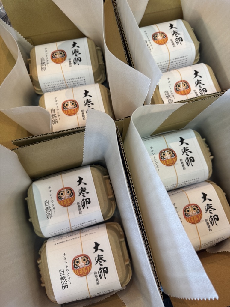 大寒の日の卵は早々に売り切れましたが、私どもでは今月中は「新春縁起・大寒卵」として販売をさせていただいております。
